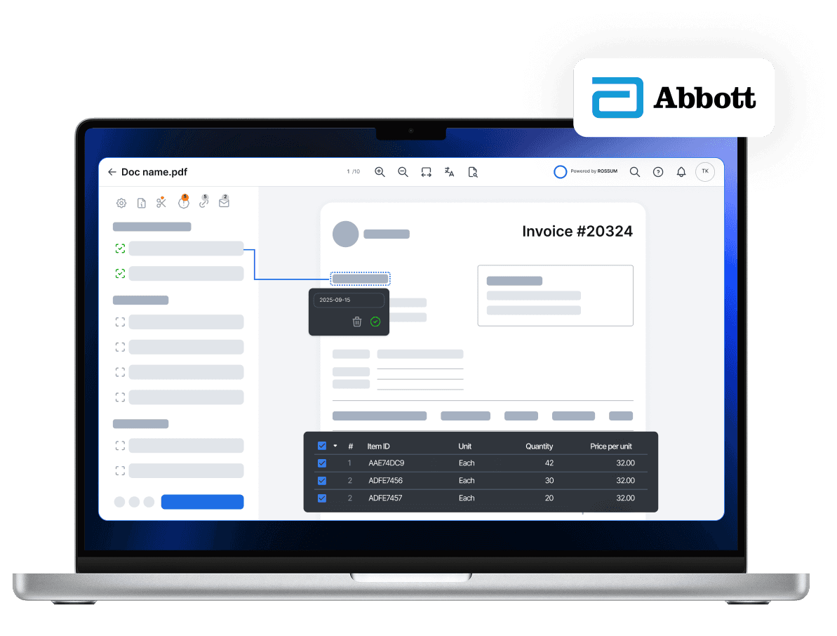 Extract - Rossum captures structured and unstructured data, learning from Abbott’s corrections over time.
