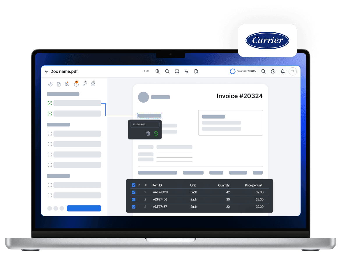 Extract - Rossum captures structured and unstructured data and learns from Carrier’s corrections over time