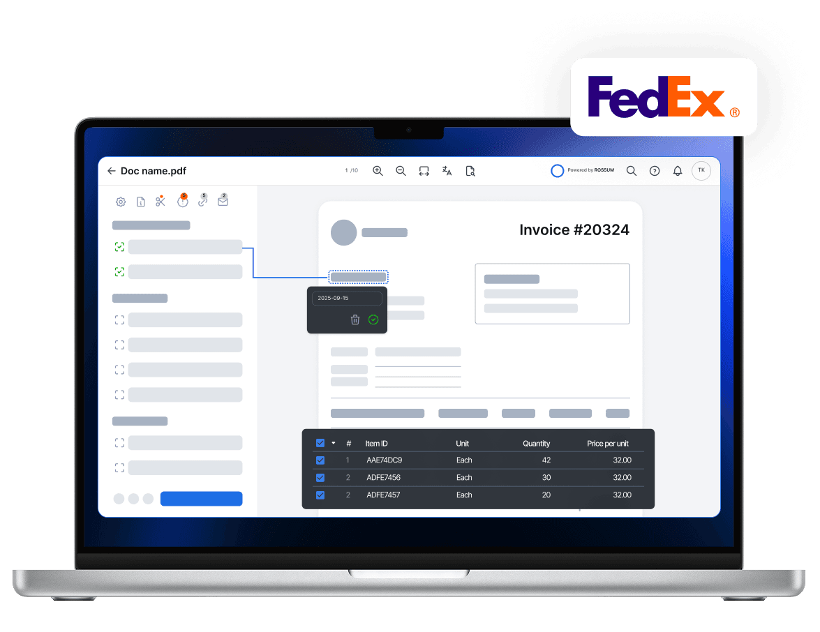 Extract - Rossum captures structured and unstructured data, learning from FedEx’s corrections over time.