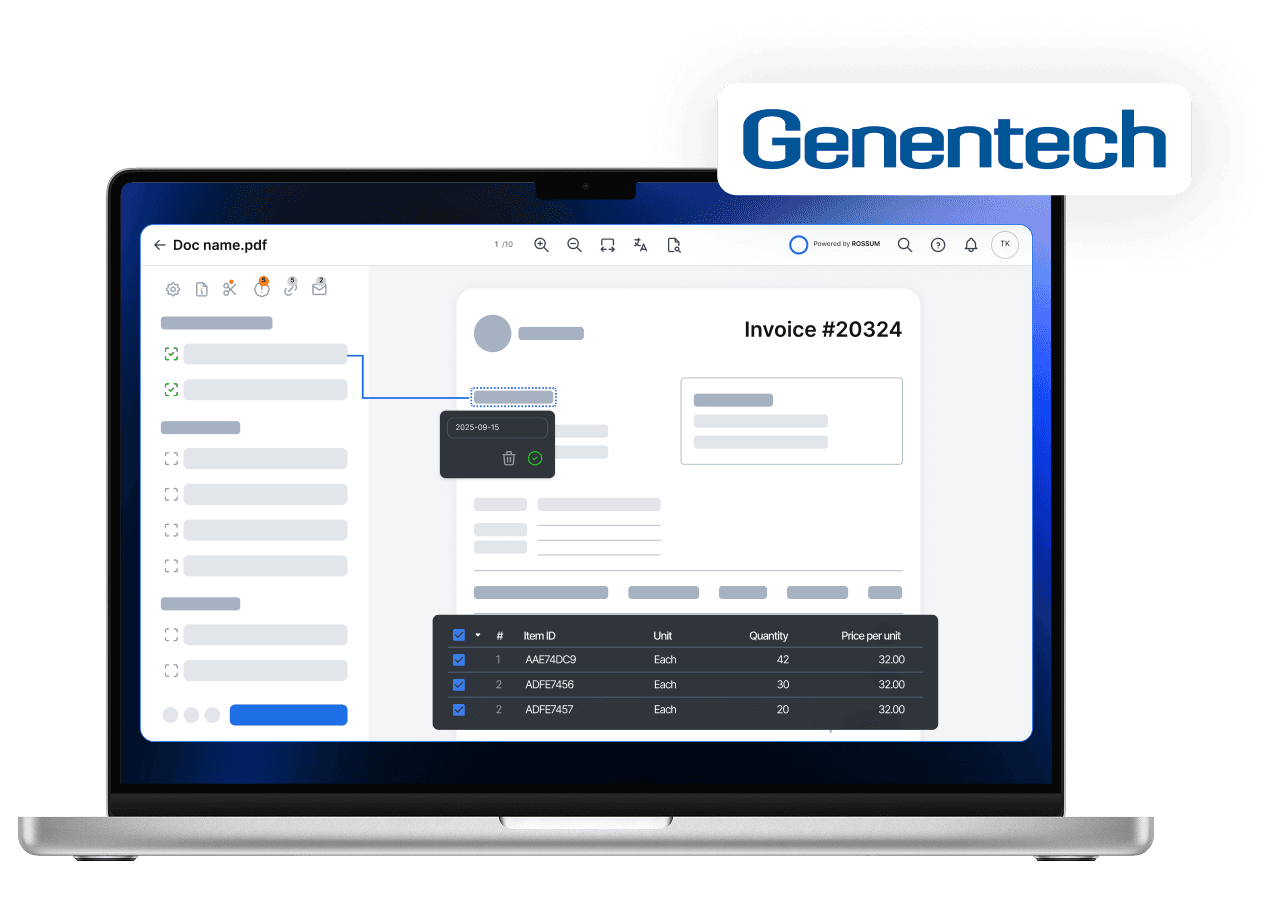 Extract - Rossum captures structured and unstructured data, learning from Genentech’s corrections over time.