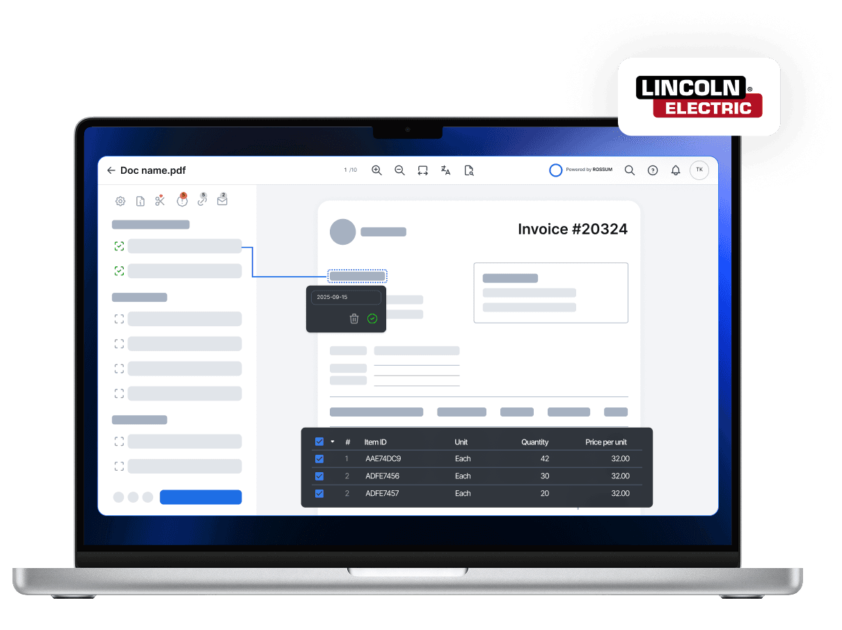 Extract - Rossum captures structured and unstructured data, learning from Lincoln Electric’s corrections over time.